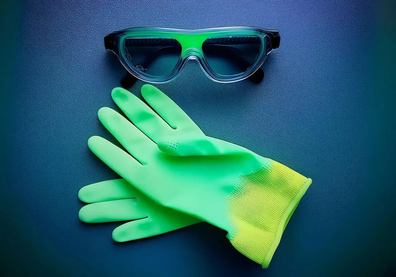 • Luvas descartáveis, óculos de segurança e um respirador.