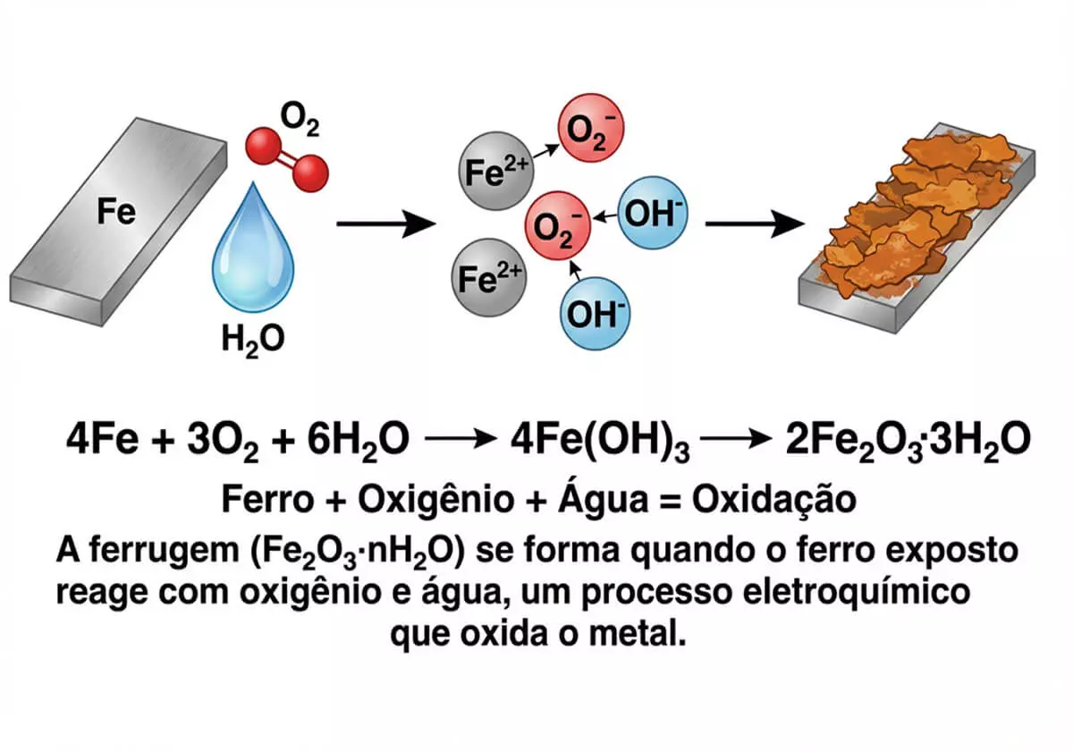 Ferrugem nada mais é do que o resultado de uma reação química entre ferro, água e oxigênio — a famosa oxidação. Quando o metal entra em contato com umidade, começa a criar a camada alaranjada que tanto incomoda. Isso desgasta o material, pode causar quebras e prejudica o funcionamento de todos os tipos de ferramentas e objetos. Ignorar a ferrugem pode sair caro. Ela pode corroer parafusos, enfraquecer peças de máquinas e até comprometer a segurança de móveis, portões e estruturas.