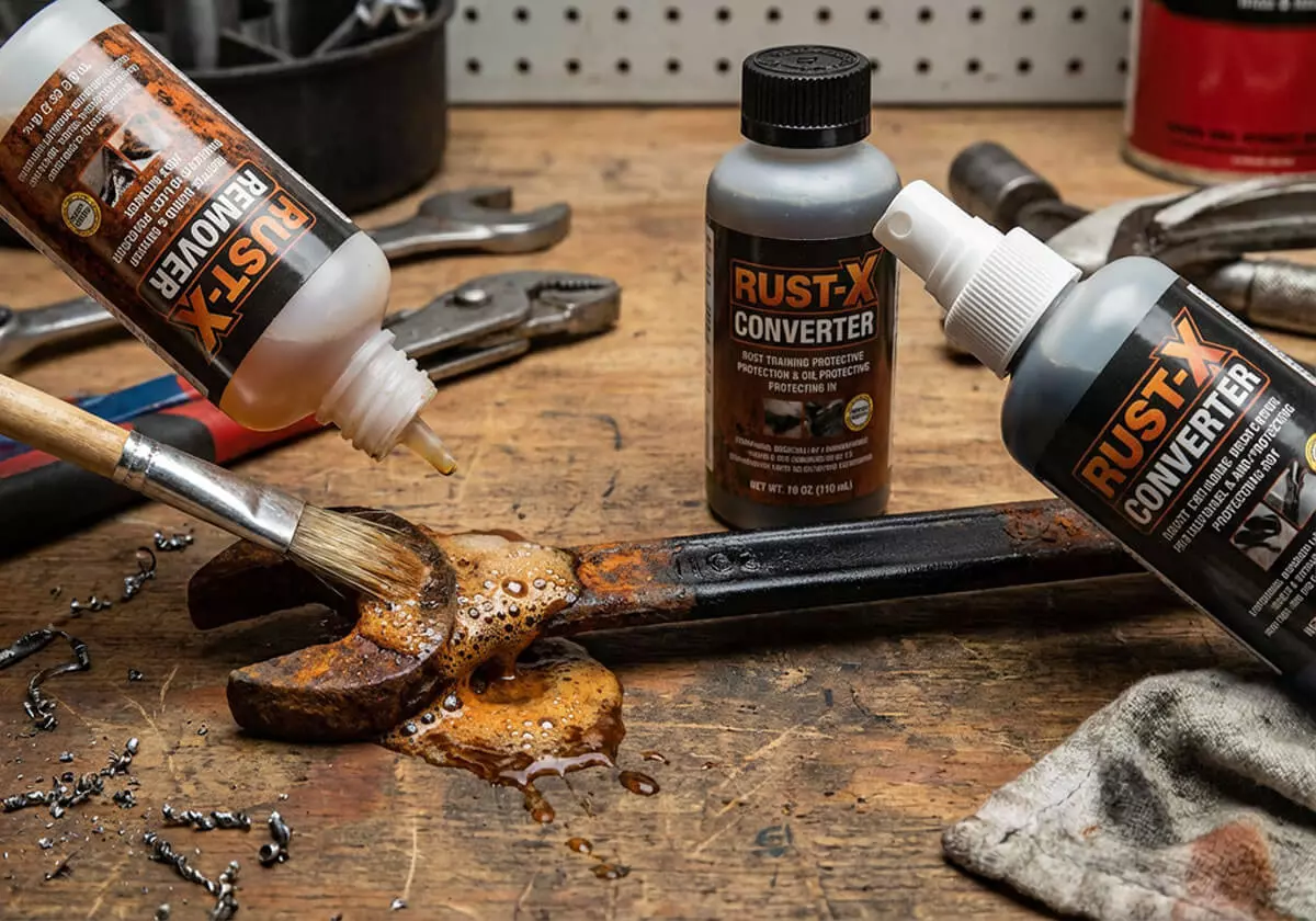 Conversores de ferrugem, feitos à base de ácido fosfórico ou oxálico, transformam a ferrugem em uma camada protetora e deixam a peça pronta para pintura.
